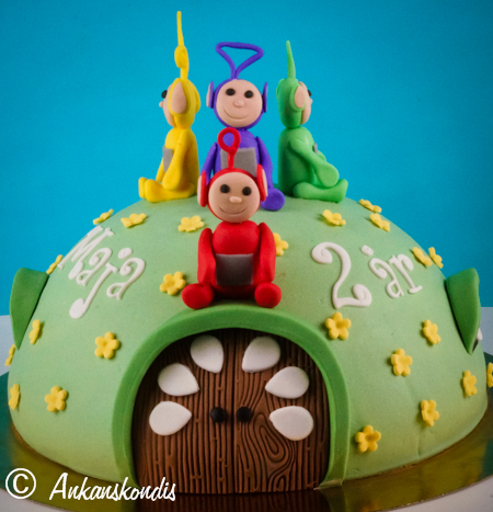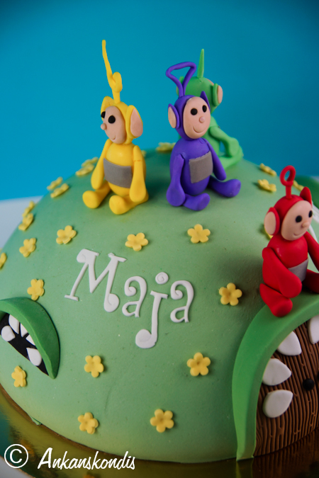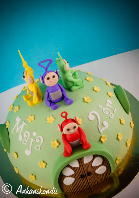 $ 0 0 Maja 2 år blev överraskad med en Teletubbies - tårta idag.Tårtan har ljus botten, vaniljgrädde, vaniljkräm och jordgubbsmousse. Täckt med marsipan och figurerna har jag gjort i Dekorfondant.